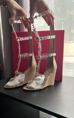 Shoe Dazzle, Yulanda Jeweled Gladiator Wedge Sandals$30Upland, CA