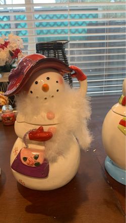 Fancy snow woman cookie jar with purse hat and for scarf$10Carmichael, CA