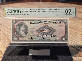 Banco de Mexico "SPECIMEN", 20 Pesos 1953 LA Corregidora$120Pasadena, CA