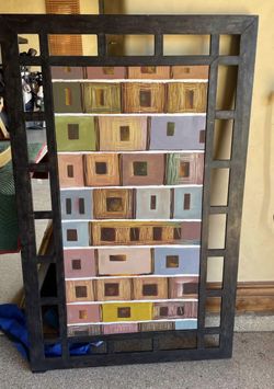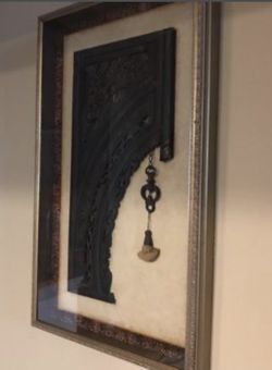 art canvas painting with metal hand painted frame 5 ft × 38 inches oil paint with iron detail Beautiful statement piece Home Staging$495Rcho Santa Fe, CA