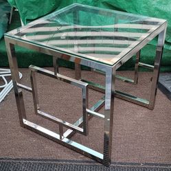 Modern Mid-century Hollywood Regency Chrome & Glass Geometric Square Table 24 x 24" Silver Metal$49Los Angeles, CA