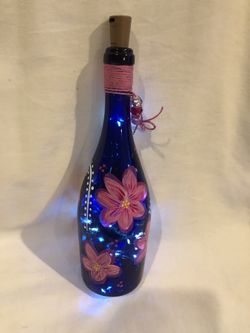 Blue Flowers Painted On Win Bottle.$50Huntington Beach, CA