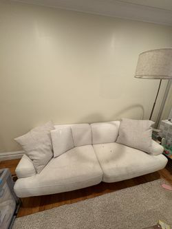 White Fabric Sofa With Throw Pillows $100Queens, NY