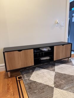 Black and Wood TV Stand with Storage$200Queens, NY