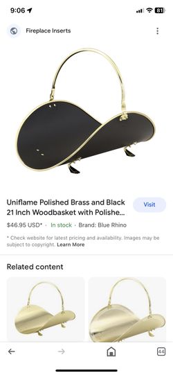 Black And Gold Detail Footed Fireplace Log Holder Carrier, Magazine Holder For Hearth Or Storage$15La Mesa, CA