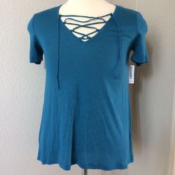 Old Navy V Neck Lace Up Front Loose T-shirt in blue Size XS$10Highlands Ranch, CO
