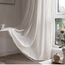 RoomTalks White Boho Farmhouse Curtains for Bedroom Living Room 84 Inch Length French Country Cute Polyester Window Curtain Panels Embroidery Striped $40Rowlett, TX