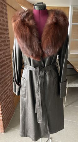 Knee Length Red Fox Fur Collar Brown Leather Wrap Coat$125Vancouver, WA