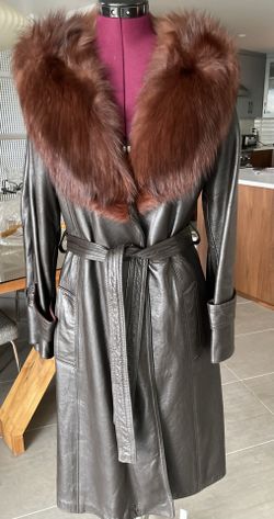 Red Fox Fur Collar Knee Length Dark Brown Leather Wrap Coat$140Vancouver, WA