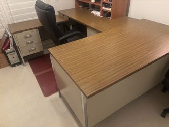 Vintage Mid-Century Modern Office Desk Set – Metal Base + Wood Grain Top$200Henderson, NV
