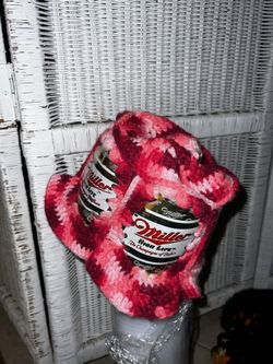 Vintage Crochet Beer Can Millie Lite Granny Square Pink White $15Boca Raton, FL