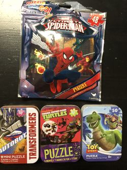 4 Toddler puzzles - Spider-Man, Transformers, Toy Story, Ninja Turtles (50 pieces)$10Irvine, CA