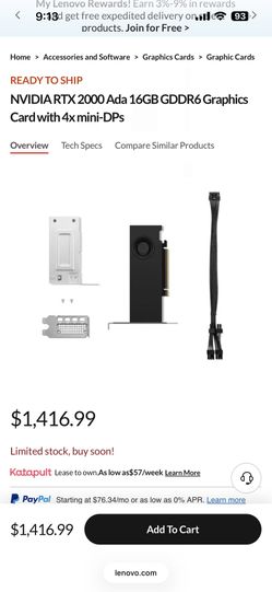 Brand New Dell NVIDIA® RTX™ 2000 Ada Generation, 16 GB GDDR6, half height, PCIe 4.0 x 8, 4 mDP Graphics Card$1,000Los Angeles, CA