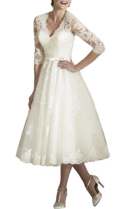 Women's V Neck 3/4 Sleeves Mid Length Wedding Dress$40Fremont, CA