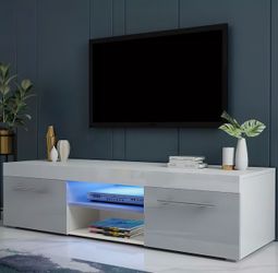 New Modern 51” White TV Stand With Color Changing LED light - Entertainment Center - TV Cabinet with Storage - White/Gray $220Fort Lauderdale, FL