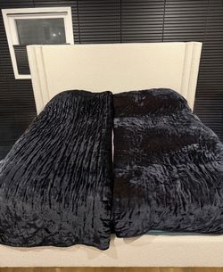 LIKE NEW - Boucle Fabric King Size Bed (no mattress) with brass footings$400Dearborn Heights, MI
