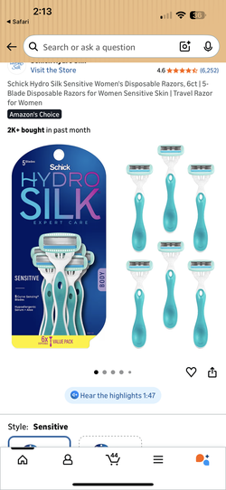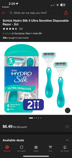 3Pack of 6ct Schick Hydro Silk Sensitive Womens Disposable Razors, 6 ct, 5-Blade Disposable Razors for Women Sensitive Skin$25Buckeye, AZ