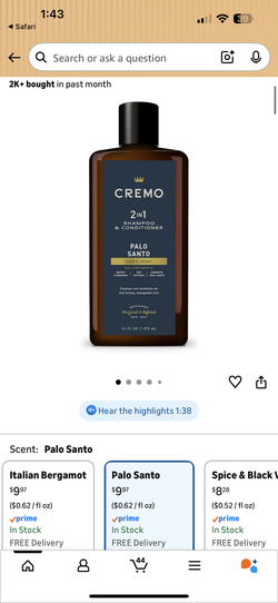 3 PACK Cremo Palo Santo Barber Grade 2-n-1 Shampoo & Conditioner$15Buckeye, AZ