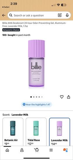 Billie AHA Deodorant 24-hour Odor-Preventing Gel, Aluminum-Free, Lavender Milk$6Buckeye, AZ