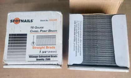 2 Boxes Spotnails stock no. 16228, 16-gauge galvanized straight brads measuring 1 3/4" (44mm) in length.$10Glendale, AZ