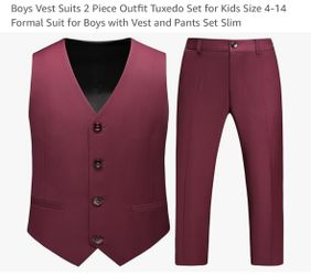 Boys Vest Suits 2 Piece Outfit Tuxedo Set for Kids Size 13-14 Formal Suit for Boys with Vest & Pant. Only wear few hours for photo shoot.$25Placentia, CA