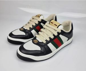 NEW GUCCI MEN CURRENT "SCREENER" BLACK & WHITE WEBBING SNEAKER SHOES$650Corona, CA