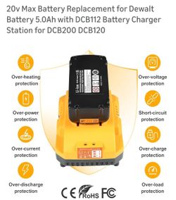 20v Max Battery Replacement for Dewalt Battery 5.0Ah with DCB112 Battery Charger Station for DCB200 DCB120