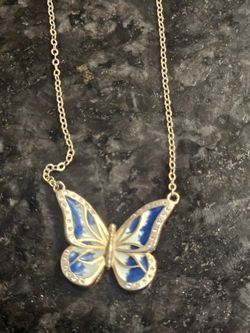 Blue Butterfly With Diamonds Necklace 925 Stamped $40Garland, TX