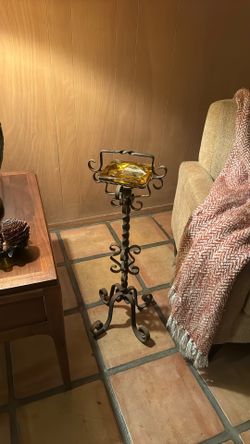 Mid Century Standing Amber Glass Ashtray/Wrought Iron $100Riverside, CA