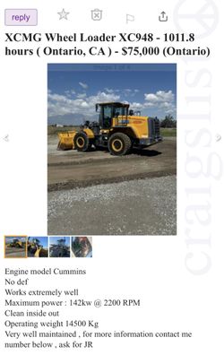 Wheel Loader $75,000Ontario, CA