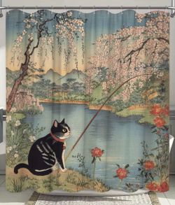 Cute Cat Fishing In Lake Shower Curtain With 12 Rings $19Long Beach, CA