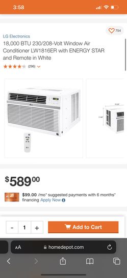 18,000 BTU 230/208-Volt Window Air Conditioner LW1816ER with ENERGY STAR and Remote in White$450Haines City, FL