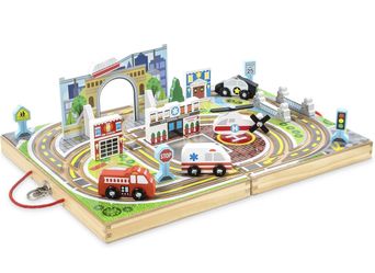 BRAND NEW Melissa & Doug 18-Piece Wooden Take-Along Tabletop Town, 4 Rescue Vehicles, Play Pieces$30Irving, TX