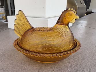 Vintage Indiana Glass Hen on Nest Amber Orange Glass Candy Dish $65Long Beach, CA