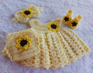 Crochet Baby Girl Yellow Sunflowers Headband Heirloom Dress Set Photo Prop $45Plant City, FL