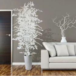 Artificial 7.5' White Ficus Tree in Decorative White Metal Pot$90Fate, TX