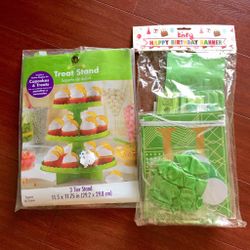 Birthday Party Green Decorations Cupcake Treat Stand Banners Balloons New$8Garden Grove, CA