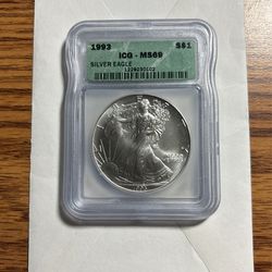 “REDUCED” $1 Silver Eagle 1993 -Professionally Graded MS69$58Columbia, MD
