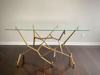 Geometric Gold Angles Glass Top Long Entryway Accent Console Table By High End Designer Made Goods $1,675Monrovia, CA