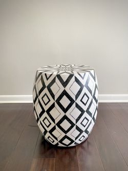 Gorgeous Modern Indoor Stool Or Side Table Black And White Marble Inlay Geometric Pattern By High End Designer Made Goods Caspian Pattern Stool$895Monrovia, CA