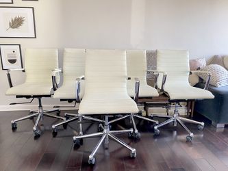 SET OF FIVE Kimball Mid Century Style Alumma White Conference Chairs With Pneumatic Height Adjustment - Set of 5 - Lounge Chairs Office Chairs Desk Ch$1,150Irwindale, CA