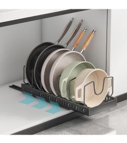 Pot Lid Organizer, Pull-out Pots and Pans Organizer, Under Cabinet Pot Lid Holder for Kitchen, Pots and Pans Storage with 8 Adjustable Dividers (Black$15South Gate, CA