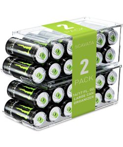 2 Pack Tall Skinny Can Organizer for Refrigerator, Stackable Large Soda Cans of 16oz & 17oz Beverage Energy Drink Container Holder Dispenser with Lid $20South Gate, CA
