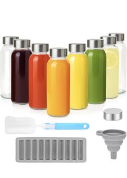 Zukro Glass Water Bottles with Lids 10.5 oz, 8 Pack Clear Reusable Glass Small Juice Bottles With Stainless Steel Cap for Juicing, Milk, Ginger Shot, $15South Gate, CA