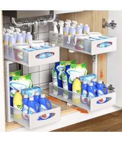 Housolution Under Sink Organizer, 2 Tier Metal Pull Out Under Sink Storage with Sliding Mesh Drawers, Height Adjustable Slide Out Under Sink Organizer$25South Gate, CA
