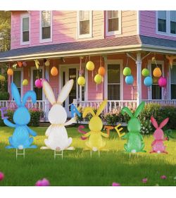 5 PCS Easter Garden Stakes Decoration, Metal Adorable Bunny Yard Signs Holding Easter Spelling Letters for Courtyard Spring Lawn Flowerbed Patio Holid$15South Gate, CA