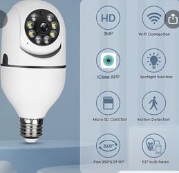 3MP Wifi E27 Light Bulb Camera Indoor Smart Home Mini Safety & Security Camera With Color Night Vision Human Motion Detection Alarm$59San Jose, CA