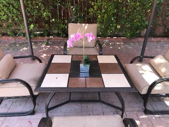 Outdoor patio furniture table with fire pit and 4 chairs.$550Los Angeles, CA