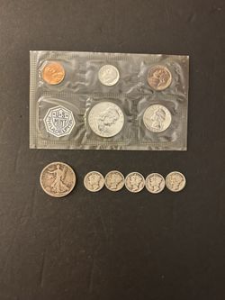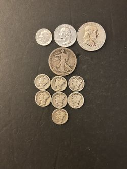 Coins - 90% Silver - Brilliant Uncirculated – 1962 Roosevelt/Washington/Franklin – Worn Liberty Walking Half/7 Worn Mercury Dimes Total 11 Coins$121Toccoa, GA