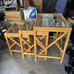 Vintage Chippendale Style Bamboo Rattan Nesting Tables with Glass Tops (Set of 3)$200Deerfield Beach, FL